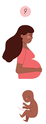 Dokuzuncu haftada bebeğinizin gözleri oluşmaya başlıyor ancak göz kapakları 27. haftaya kadar açılmayacak. 9 haftalık bebeğin boyu yaklaşık 16-26 mm iken, ağırlığı 1-1,5 gr kadar. Yüzünde kulak kepçeleri ve göz çukurları şekil almaya başladı bile.